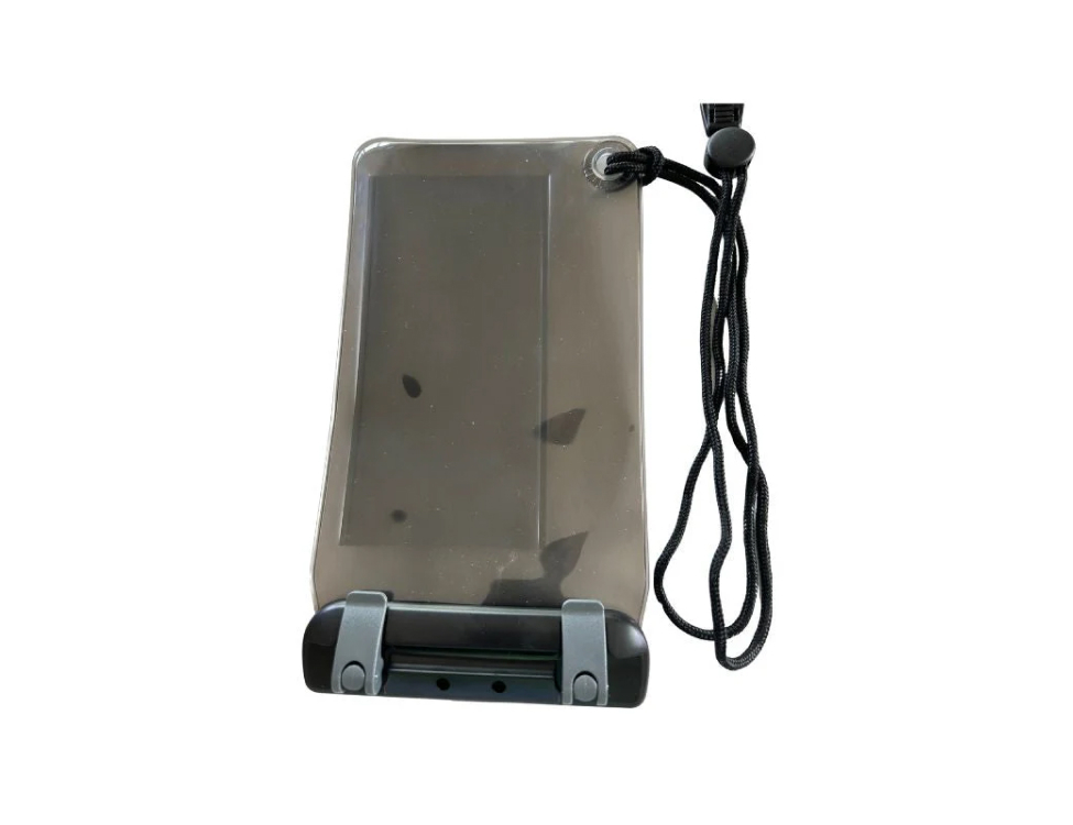 The Aquapac 568 case is designed for electronics which require a thin wire to be connected to them at all times. The special wire-thru clamp at one end allows that wire to stay connected and be waterproof. The case is usually used by professionals with specialist electronic devices but could be used for a permanently connected small tablet large phone or audio player.