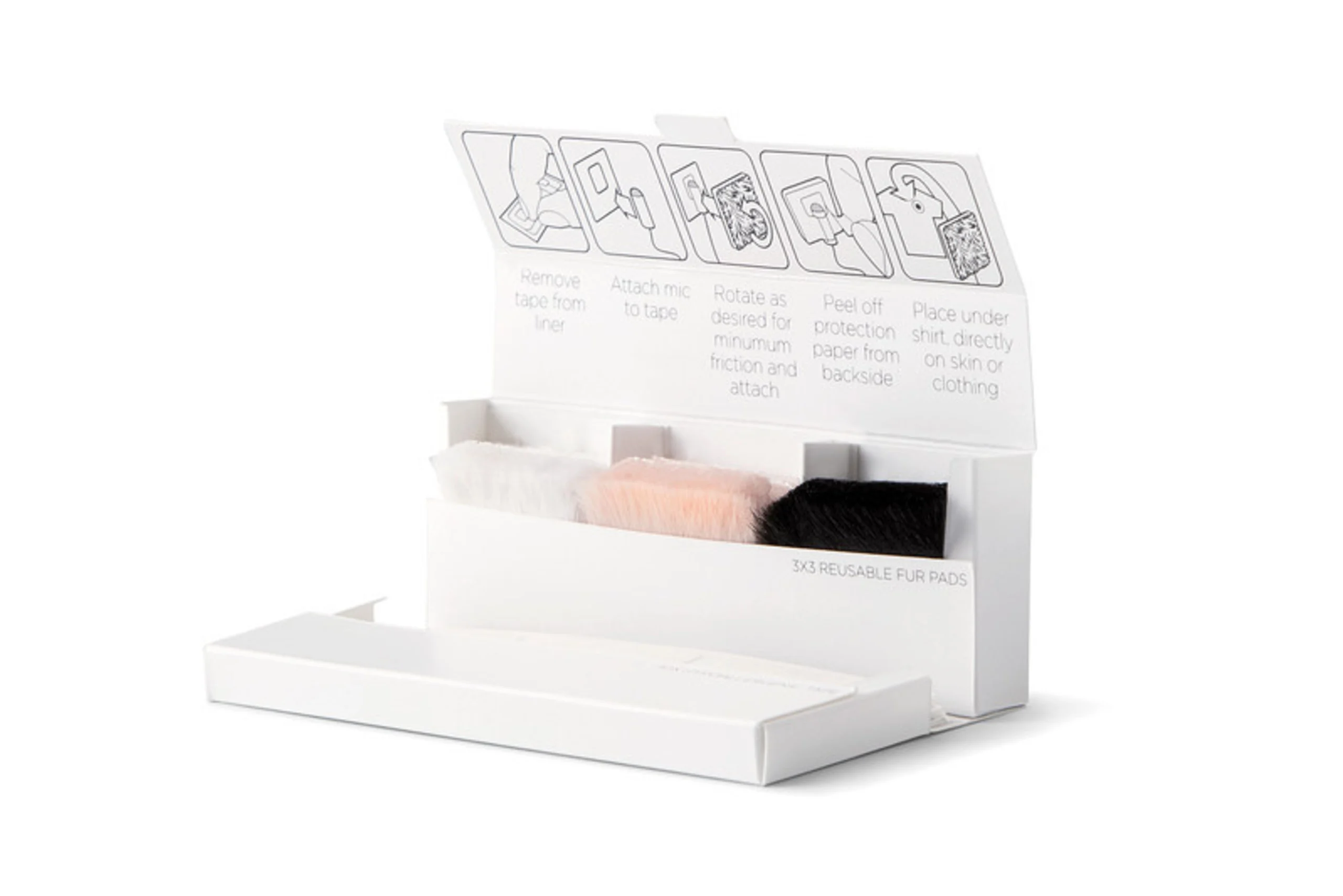 The transparent double-sided tape keeps your microphone and fur fabric securely in place on one side and sticks directly to the skin or clothes on the other side, allowing the microphone to be safely and securely mounted almost anywhere.