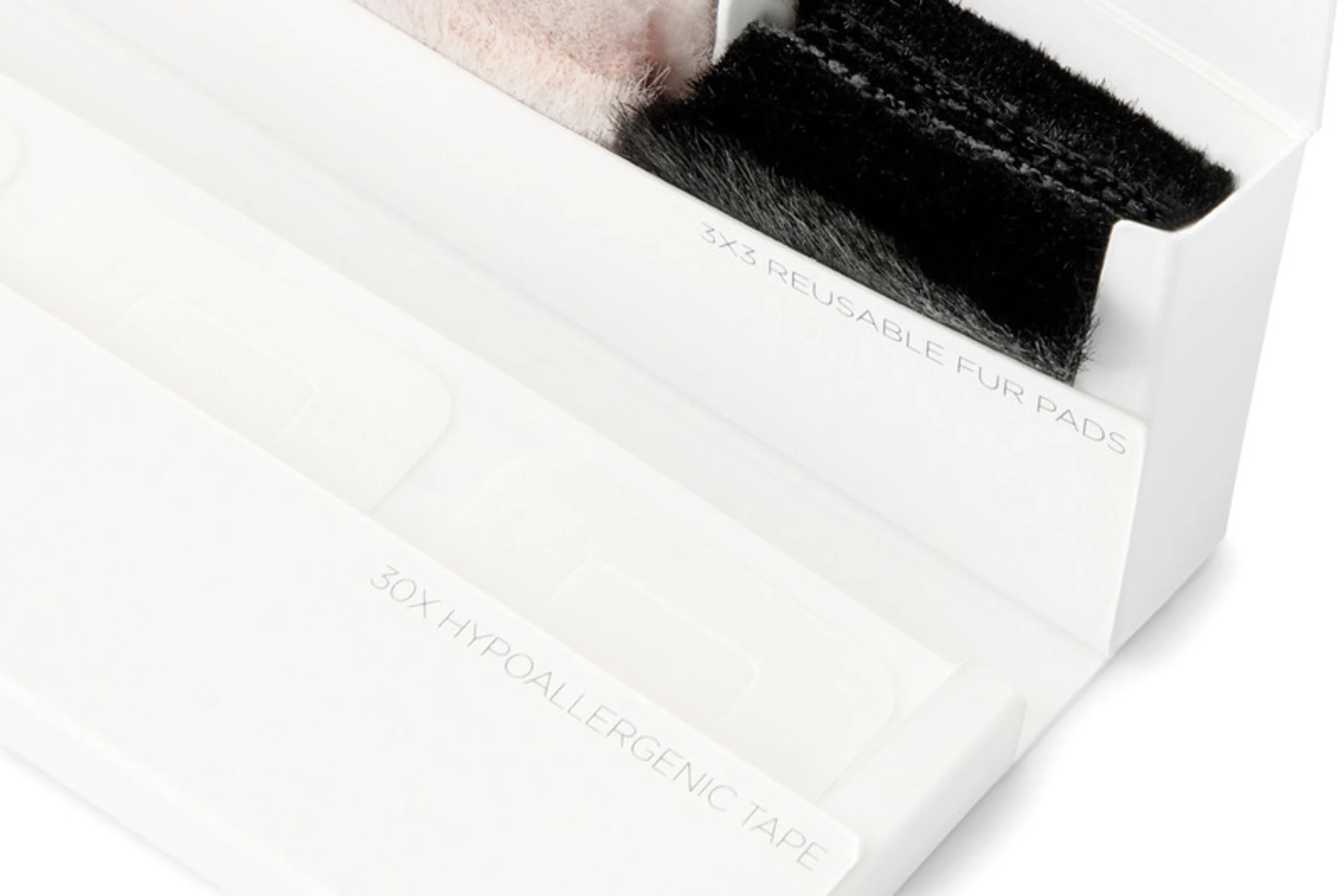 - 3 black, 3 beige, and 3 white reusable fur pads