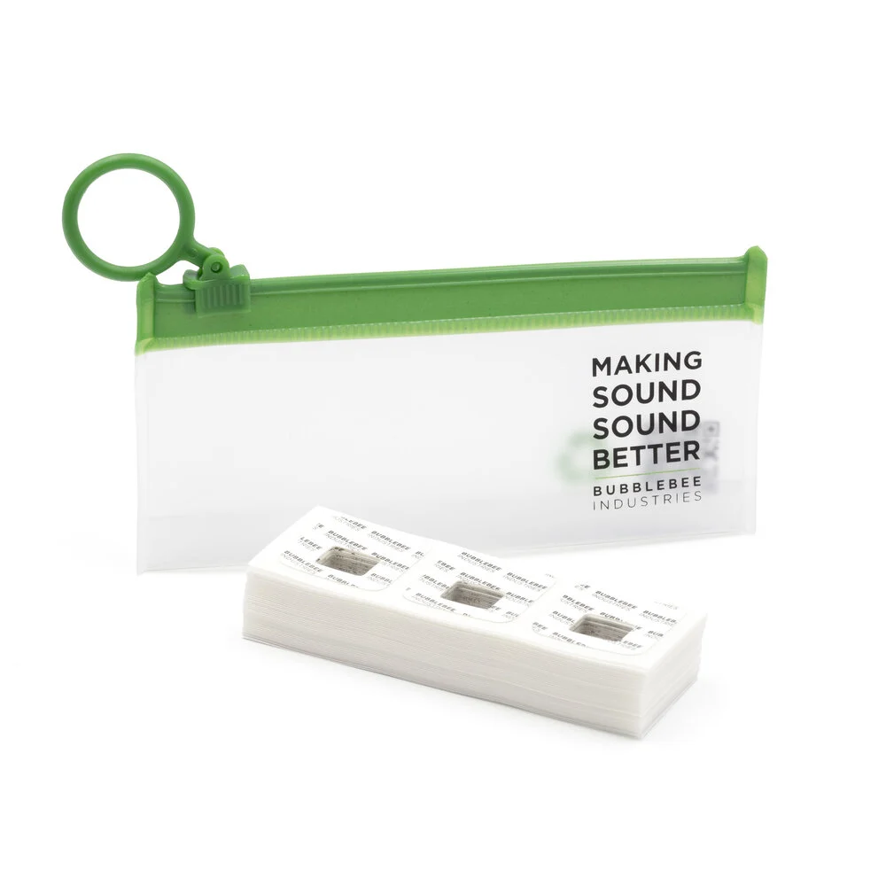 The Invisible Lav Tape is a set of 120 transparent double-sided tape strips. These are designed to discreetly and securely attach lavalier microphones to the skin or clothing.