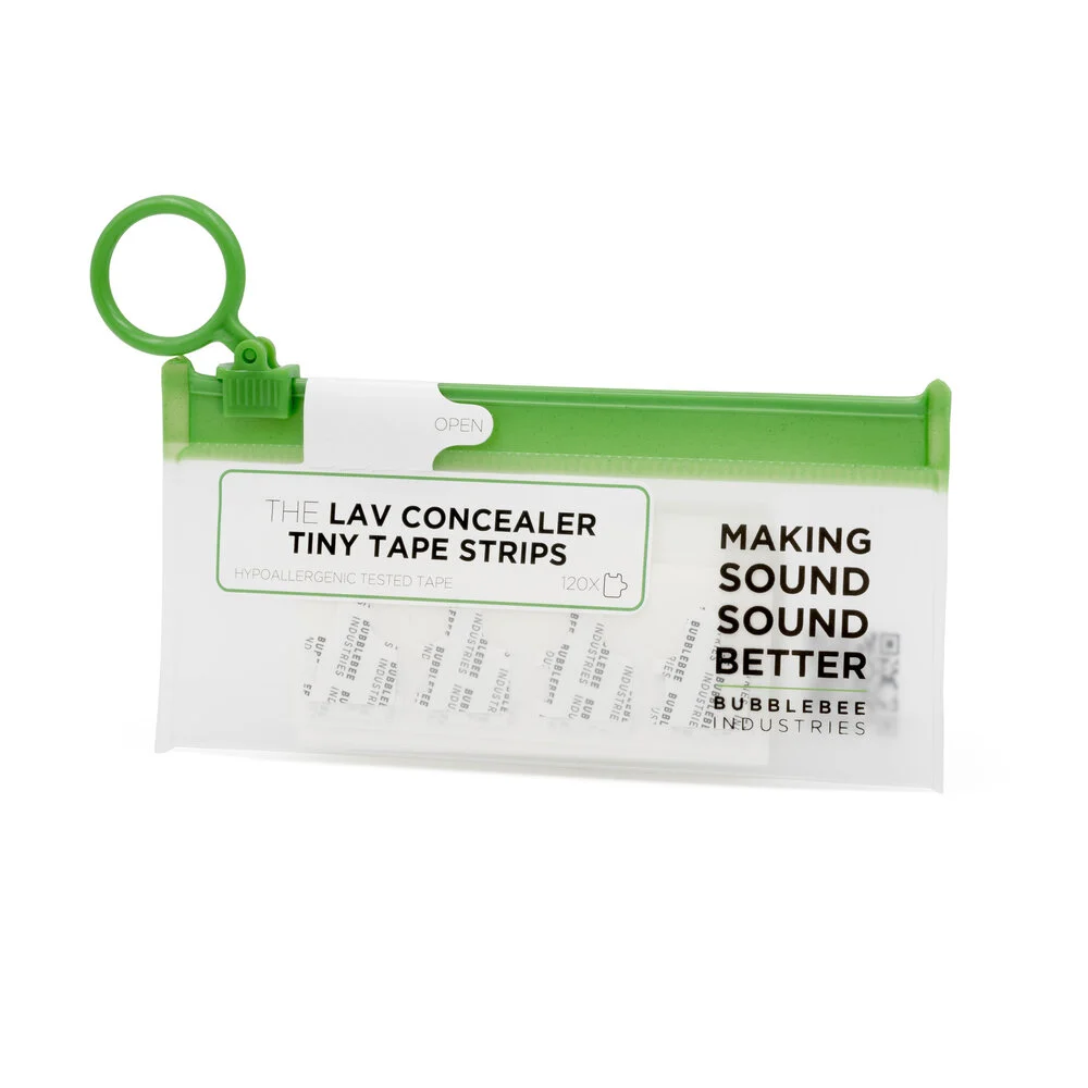 The Bubblebee BBI-LCT-120T-S, known as The Lav Concealer Tiny Tape Strips, is a set of 120 double-sided hypoallergenic tape strips. These are specifically designed to securely attach The Tiny Lav Concealers to clothing or directly onto the skin.