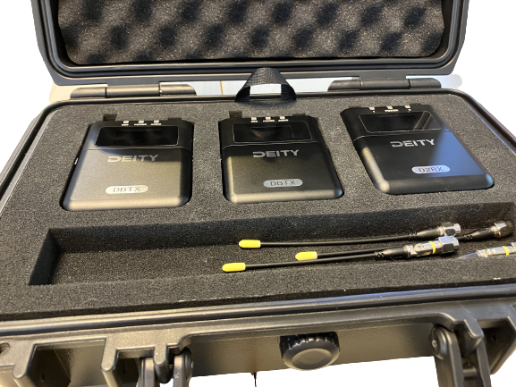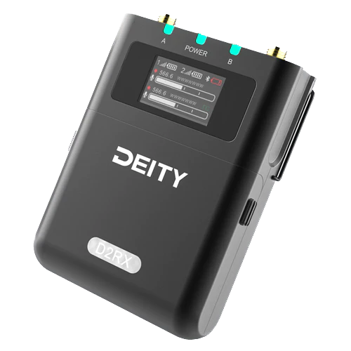 Theos Digital Wireless is capable of getting up to 14hrs of battery life when paired with the 3000mAh Deity AA battery. The Deity Theos D2RX and DBTX are also able to be externally powered via their USB-C ports.