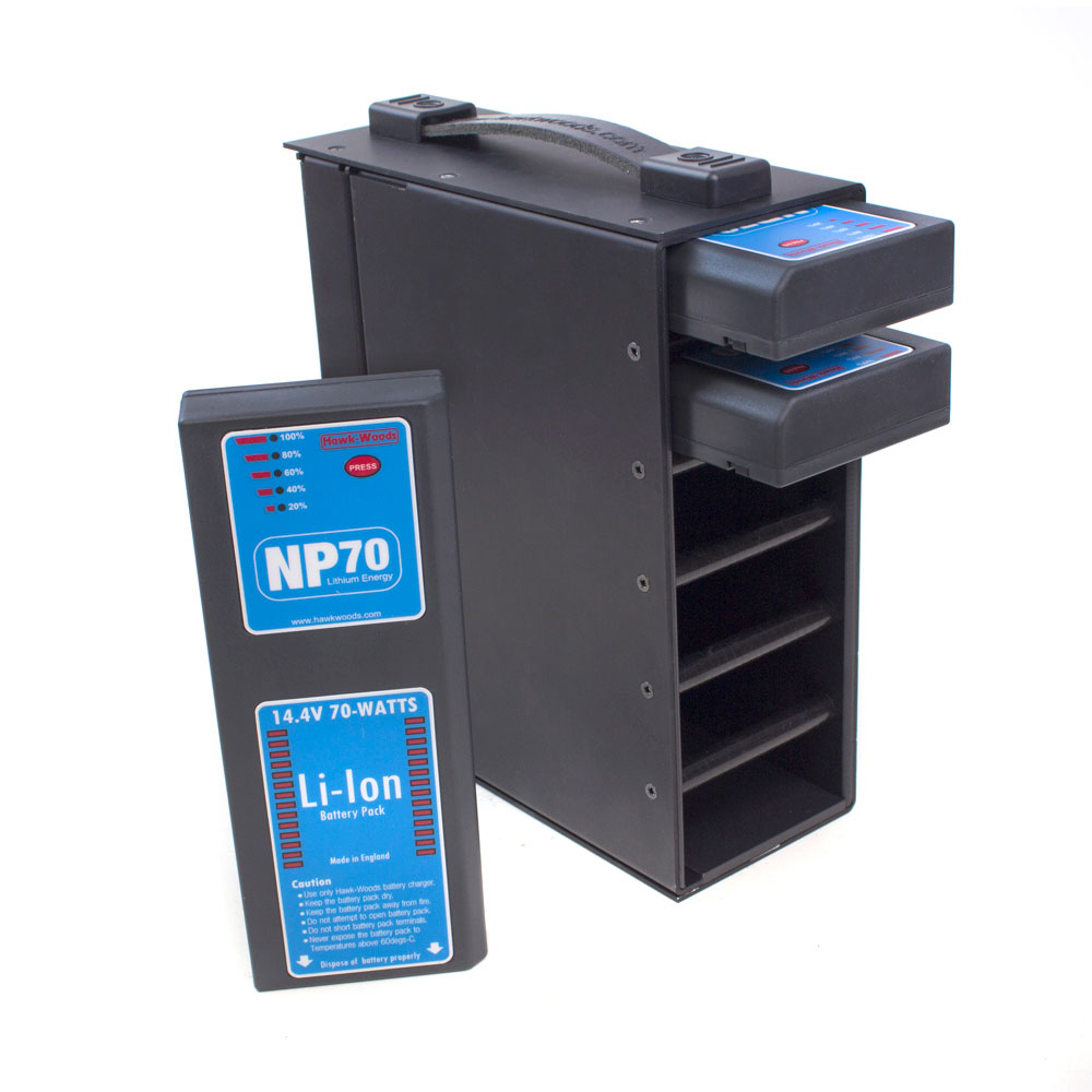 The power potential with this piece of equipment is phenomenal; if six Hawk-Woods NP-98 batteries are inserted, there is 588 Watts of available power. With a side mounted handle, it can be either trolley-mounted or hand-held to suit individual requirements.