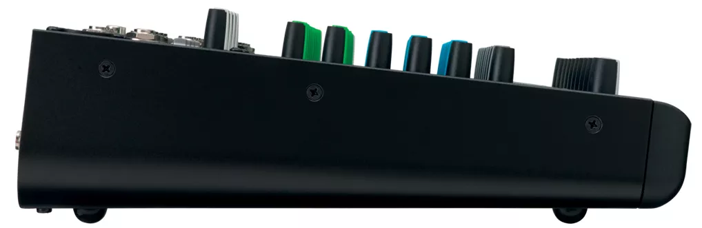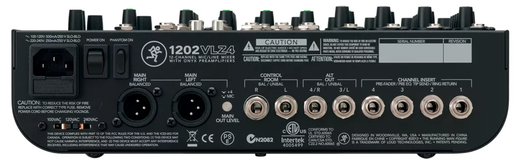12-channel mixer featuring Mackie signature high-headroom/low-noise design 4 boutique-quality Onyx mic preamps Ultra-wide 60dB gain range 128.5 dB dynamic range +22 dBu line input handling Extended frequency response Distortion under 0.0007% (20Hz – 50kHz) Improved RF rejection perfect for broadcast applications Phantom power for condenser mics 12 high-headroom line inputs 4 balanced inserts perfect for integrating outboard gear 3-band EQ (80Hz, 2.5kHz, 12kHz) 18 dB/oct 75Hz low-cut filter on mic input channels 2 aux sends, level, pan and PFL solo on each channel 2 stereo returns for connecting FX processor or other stereo source ALT 3/4 stereo bus for added routing flexibility Control room / phones source matrix High-resolution 12-segment stereo meters Sealed rotary controls resist dust and grime “Built-Like-A-Tank” rugged steel chassis with powder-coat finish High-visibility, high-contrast controls deliver convenient “at-a-glance” visual feedback Rack-mountable design using optional rack ear kit Multi-voltage power supply for worldwide use