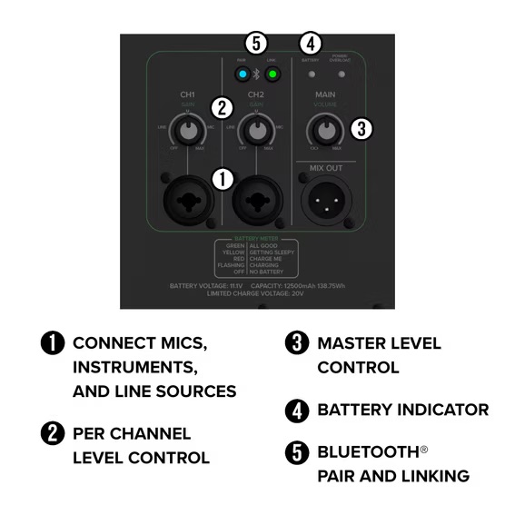 Thrash212 GO delivers the signature Mackie punchy, clean, and powerful sound even on battery power, thanks to an ultra-efficient Class-D amplifier and carefully selected components. With the Thrash212 GO, you’re ready to go anytime without relying on mains power—whether it’s a beach wedding or a century-old building with questionable wiring.
