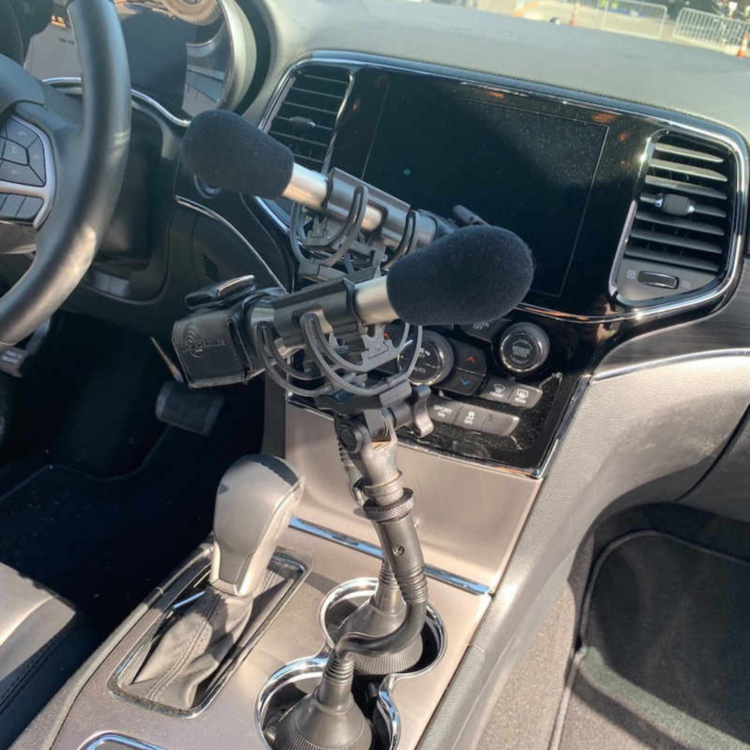 Cup holder Mic Mount, expandable base to fit most cup holders, super strong adjustable neck to hold shock mount and microphone.
