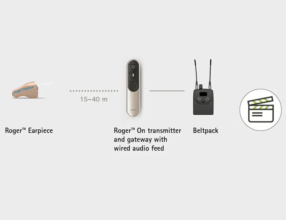 • Transmitter with built-in microphones for direct use with Roger™ Earpiece
