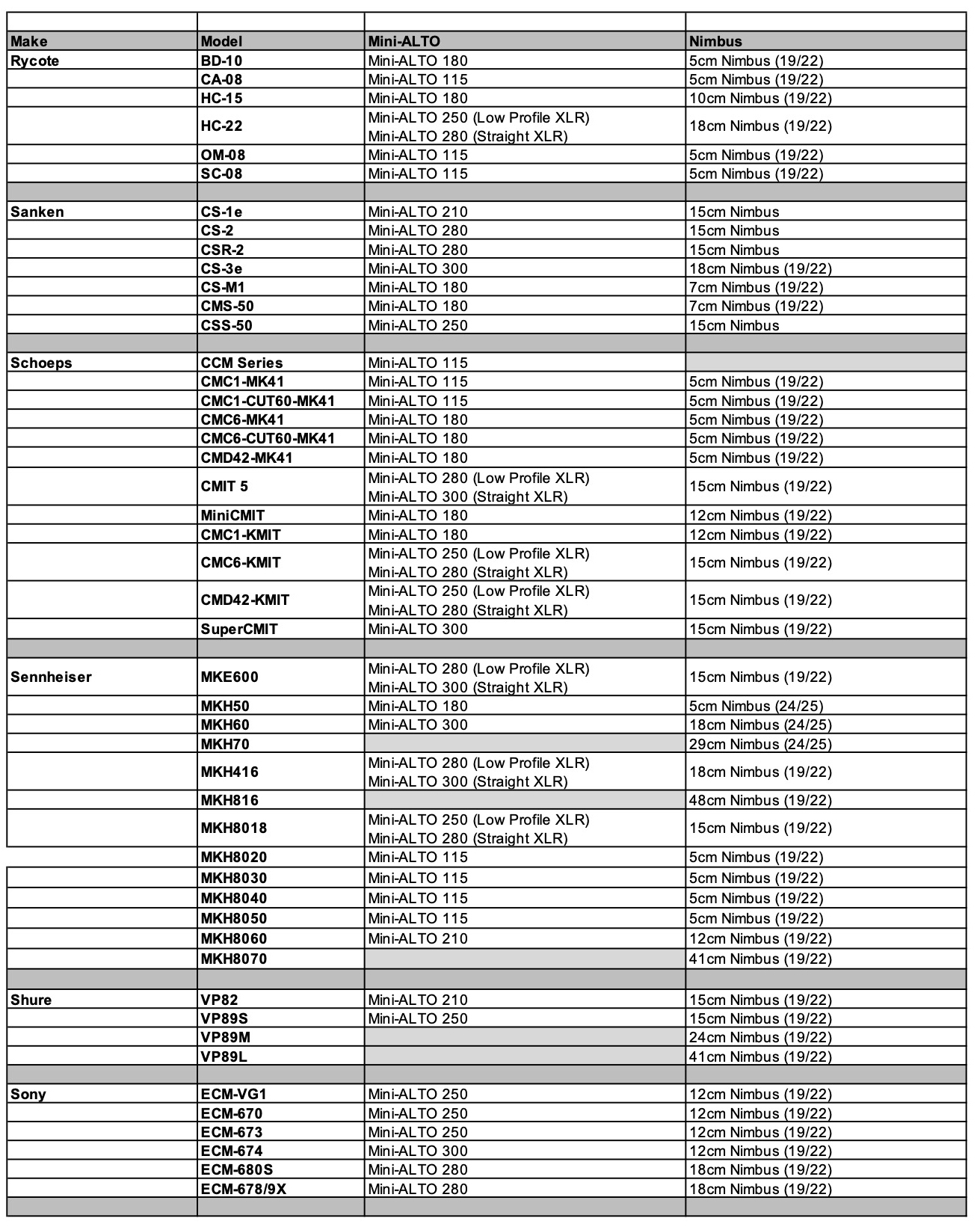 - fits: DPA4017C, Neumann KM 184, Rode NT5, Sanken CMS-50, Schoeps CMC6 Series, CMD42, MiniCMIT, CMC1U-KMIT, Sennheiser MKH50