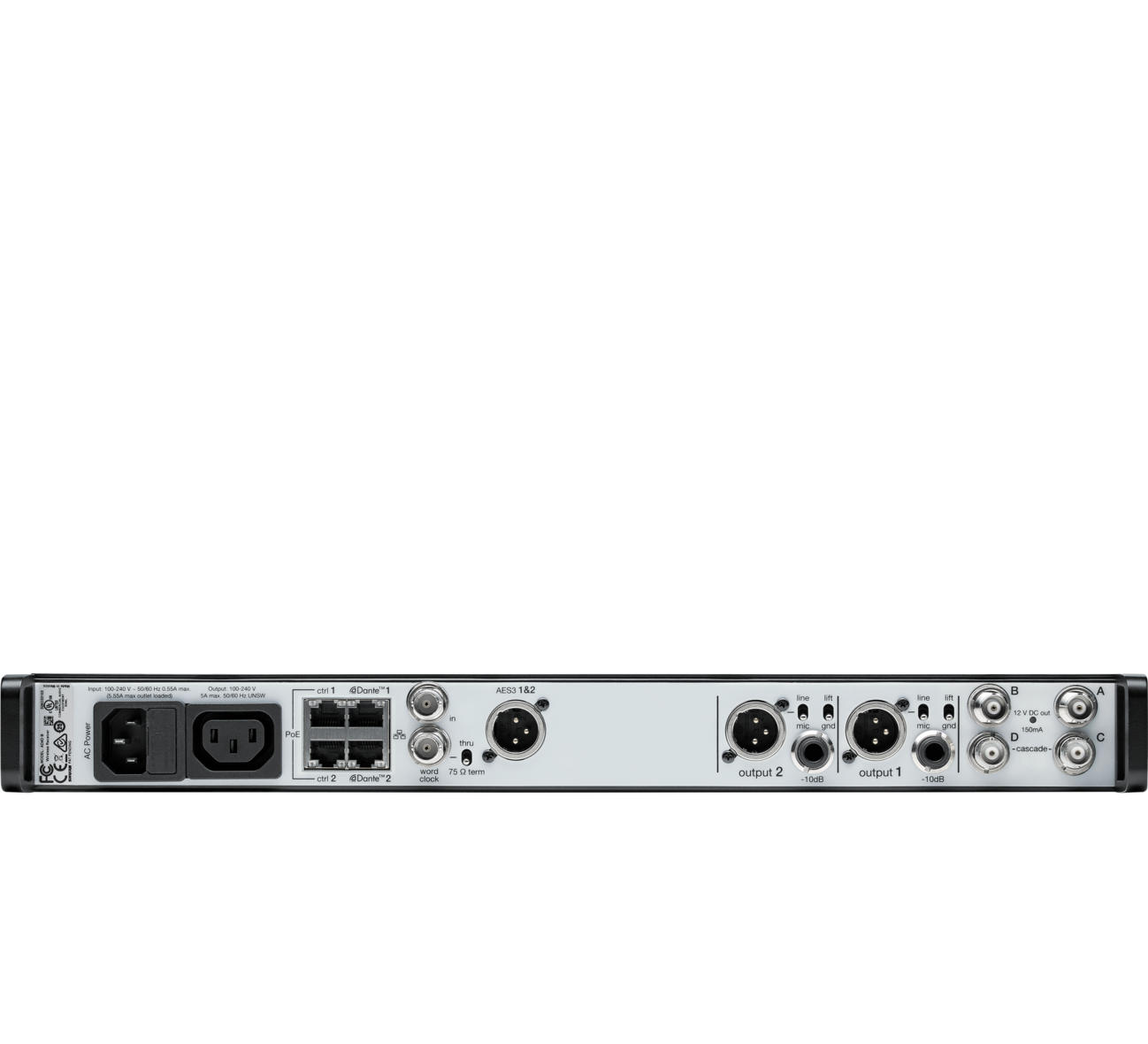 - Front panel headphone jack enables Dante™ Cue and Dante™ Browse monitoring