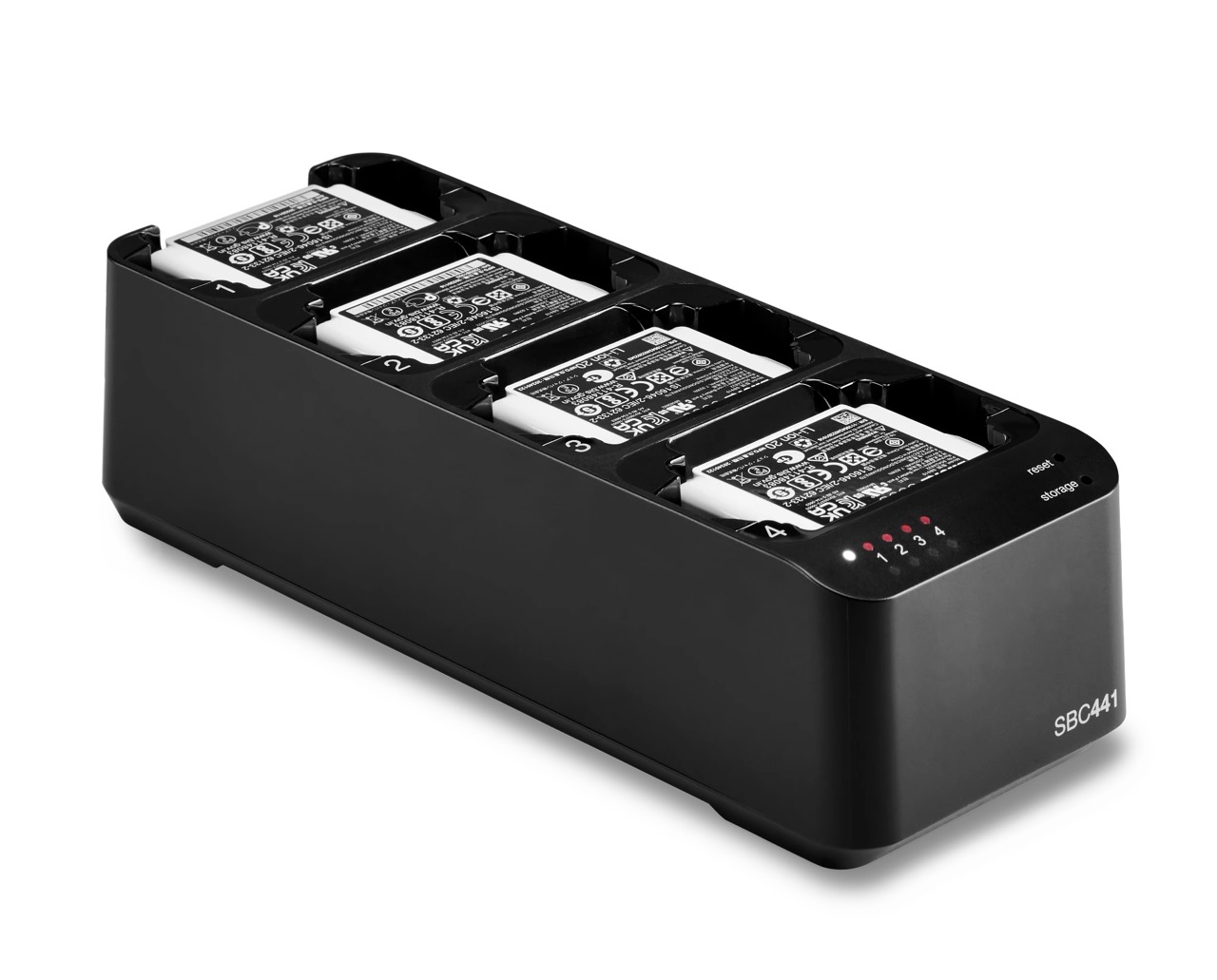 The SBC441 4-Bay Docking Charger supports up four Axient® Digital ADXR Wireless Bodypack Receivers, four Shure SB910 rechargeable