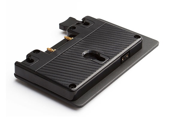 S-7000A is a Gold mount plate with a 14.4V D-tap output socket. The back metal plate has thread holes for camera assembly.