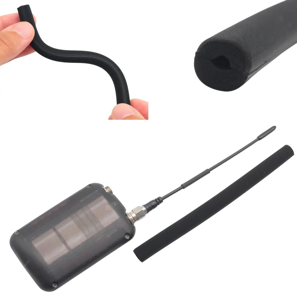 At 13 cm long, 9 mm diameter with a 4 mm internal channel the Foamie Flex slides over whip antennas of all types. The foam can be cut to size for shorter antennas and remains low profile for on-body use, making it ideal for use in Film, Theatre and Live Performance .