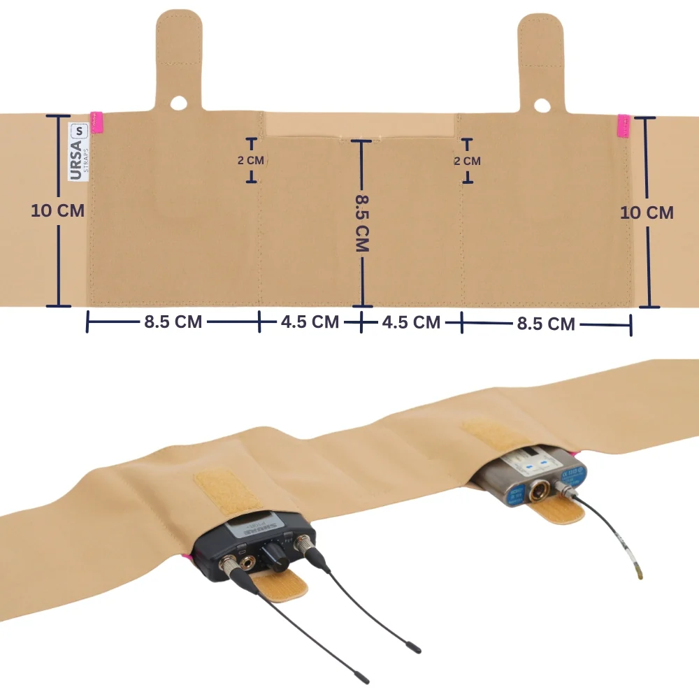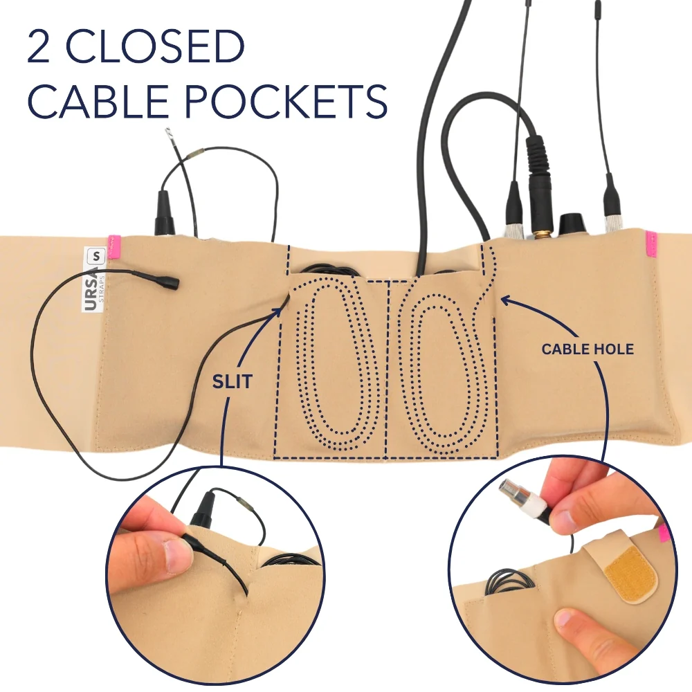 The URSA Live Strap Double Pouch is packed with upgraded features to make mic rigging faster and more secure than ever. A 'Closed Cable Pocket' keeps your mic cable neatly in place, with a smart design that lets the cable run directly from the pouch to the transmitter—no need to remove it from the pocket. One pouch can be used for a wireless transmitter and the other for an in-ear receiver.