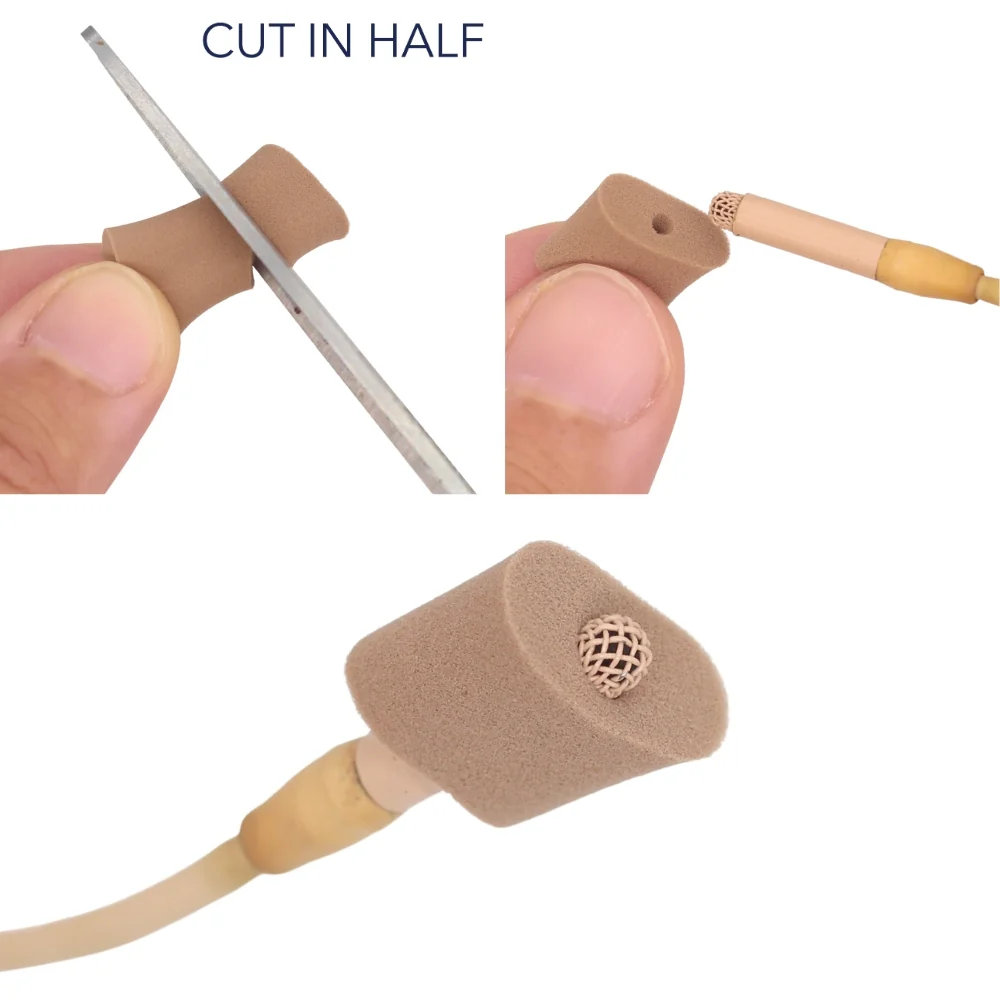 Mini Foamies Pro CARAMEL (Pack of 12). Designed with flat sides so they can be stuck directly to skin or costume. The premium foam provides a soft, quiet buffer to reduce clothing noise. They are smaller, softer and reusable.