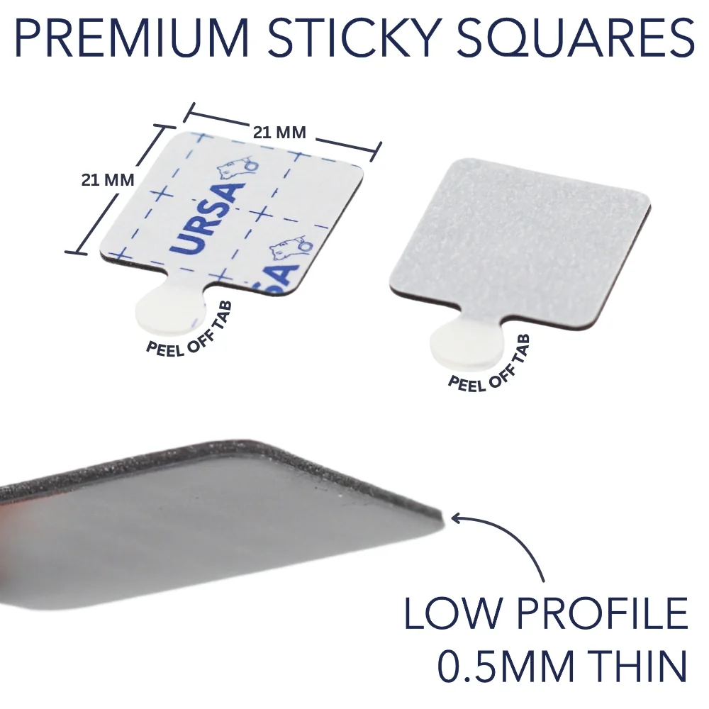 Premium Sticky Squares hold firm during movement, remain flexible against the body, and leave no residue on fabric. Whether used with fur pads, RM-11 mounts or directly onto clothing layers, they deliver reliable performance without fabric damage.