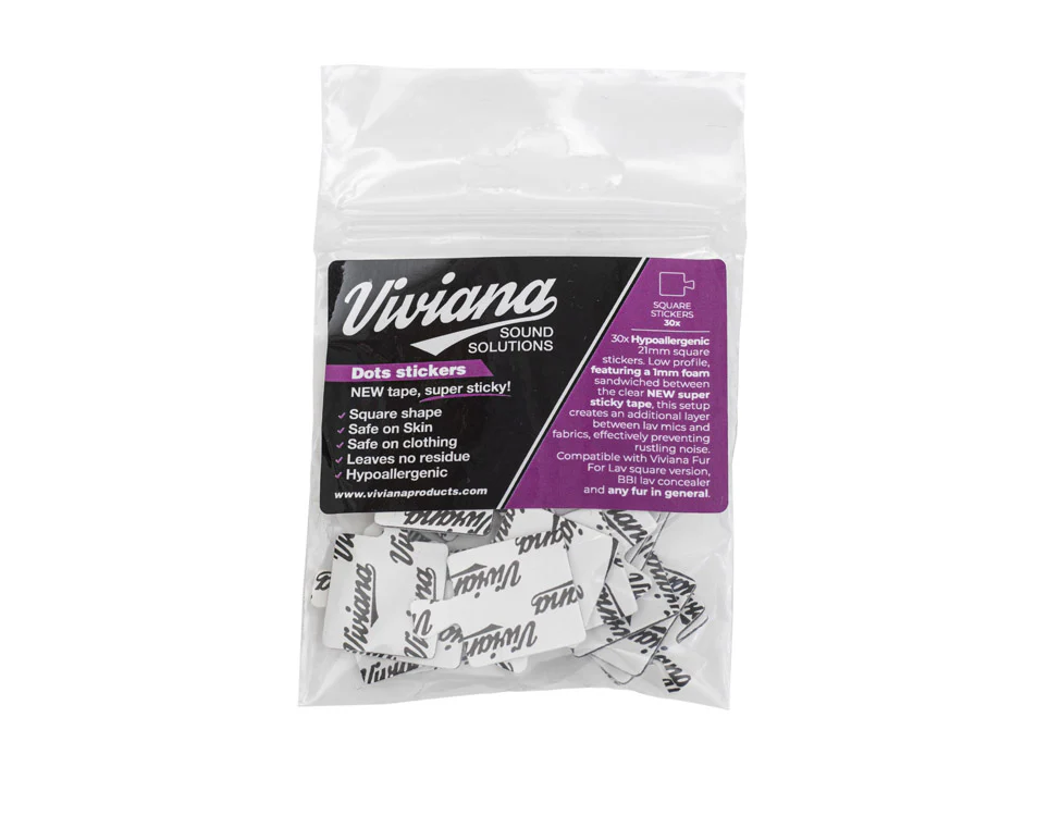 Low-profile hypoallergenic tape featuring a 1mm foam layer sandwiched between the new super sticky tape. This configuration creates an additional barrier between lav mics and fabric, effectively preventing rustling noise. They are skin-safe, clothing-friendly, and leave no residue.