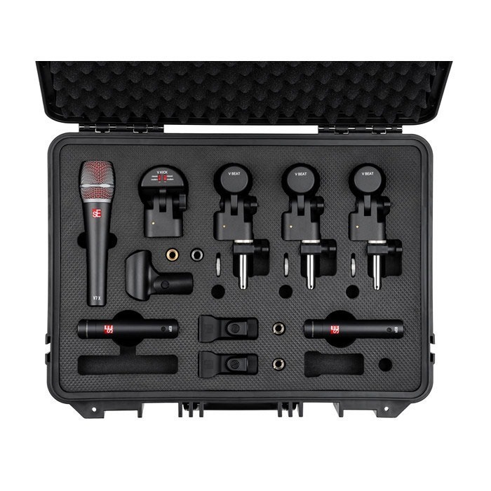 The sE8 is a high-performance small-diaphragm condenser from the labs at sE Electronics, and a perfect solution for drum overhead miking. A sophisticated new capsule backplate design provides a perfectly balanced sound that’s never harsh, no matter how much EQ or filtering is applied later - and with the highest dynamic range and SPL handling in its class, along with attenuation pads and low-cut filters for superb flexibility, the sE8 is ready for any sounds you’re making, whether in the studio OR on stage. This stereo pair has been factory-matched for best possible performance and stereo imaging. ACK ARENA consists of one V KICK for your bass drum, three V BEATs and V CLAMPS for your toms, one V7 X for your snare, and a pair of sE8 condensers for your overheads. All mics and accessories come securely packaged inside a robust and distinctive plastic flight case, with an empty space included to accommodate your favorite hi-hat mic.
